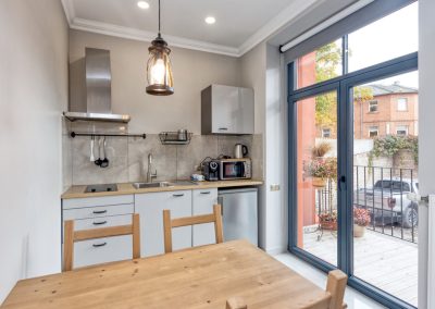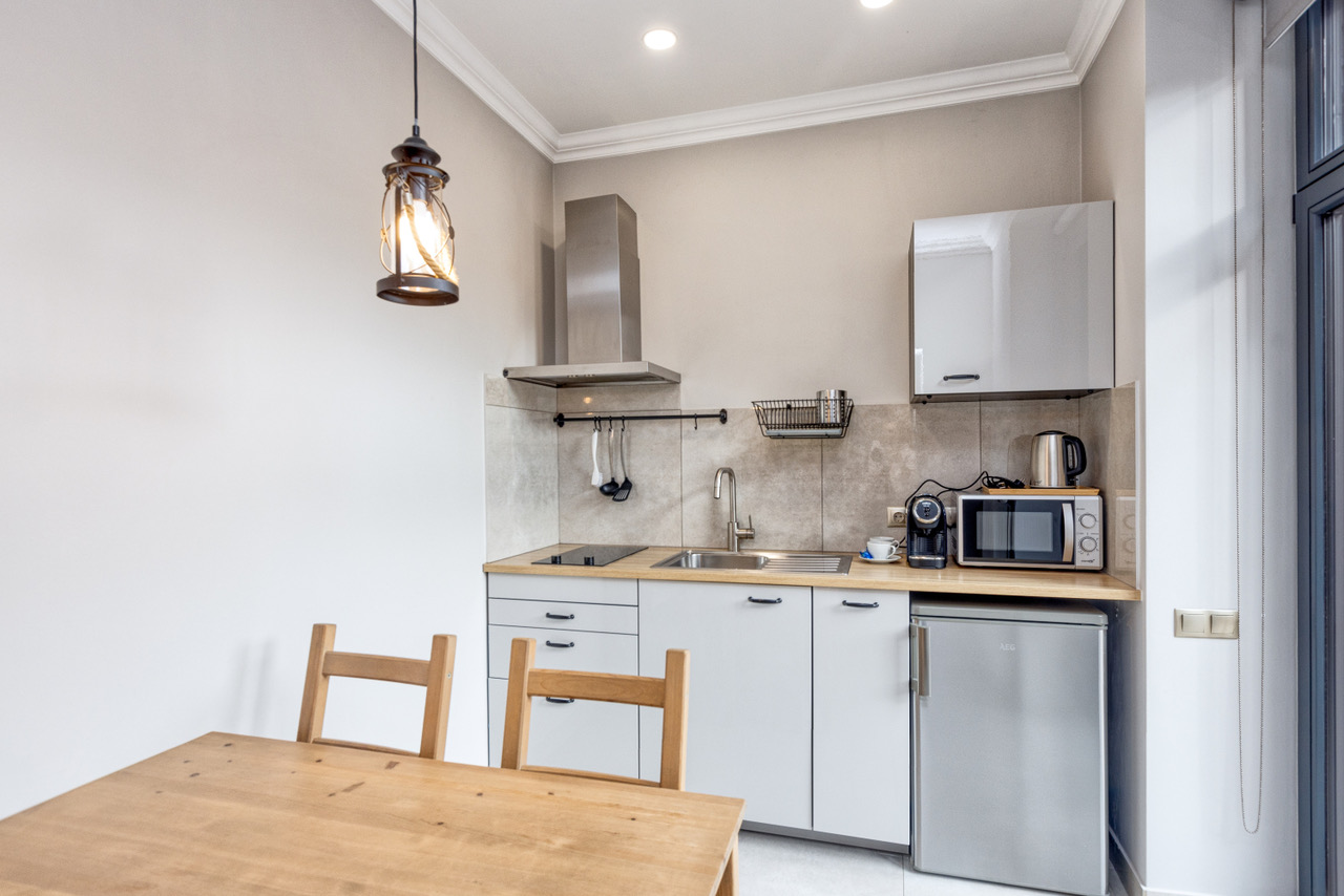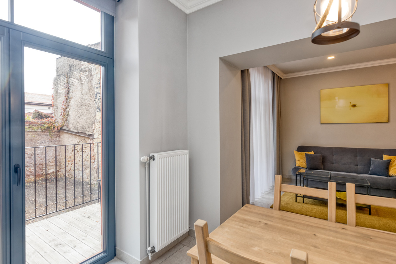 Šī dzīvokļa īpašas ērtības ir sauna un kamīns. Šajā dzīvoklī ir 1 viesistaba, 1 atsevišķa guļamistaba un 1 vannas istaba, kurā ir duša ar zemu pamatu un fēns, turklāt dzīvoklis ir ar privātu ieeju. Viesi var pagatavot maltītes virtuvē, kurā ir plīts virsma, ledusskapis, virtuves piederumi un mikroviļņu krāsns. Šī dzīvokļa ērtību klāstā ietilpst sienas ar skaņas izolāciju, plakanā ekrāna televizors ar straumēšanas pakalpojumiem un terase ar skatu uz iekšpagalmu. Šajā uzturēšanās vietā ir 2 gultas.